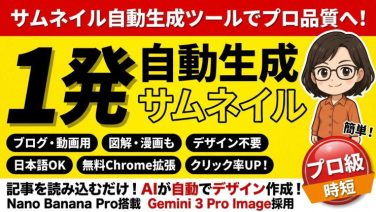 ブログや動画のサムネイル作成に悩んでいませんか?Thumbnail CreatorならGoogleの最新AI「Nano Banana Pro」で、記事を右クリックするだけでプロ品質のサムネイルや図解を自動生成。デザインスキル不要で1枚約20円、使い方も簡単です。